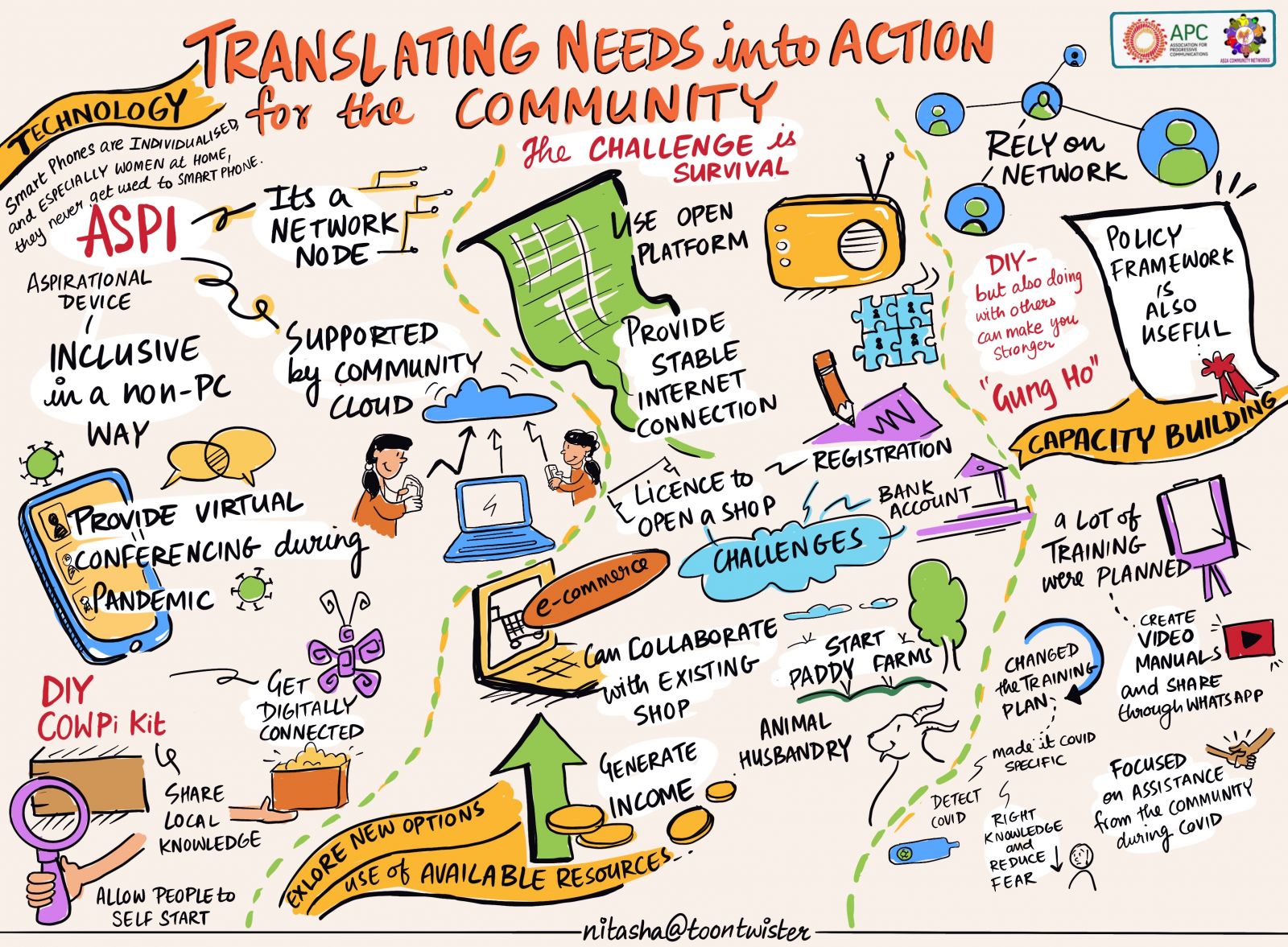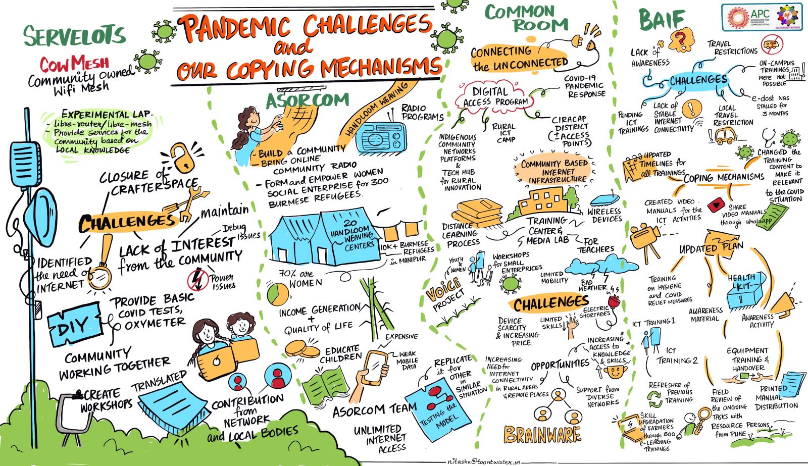 The participants from Asia also took part in a regional gathering to share their experiences during three sessions, focusing on the challenges posed by the pandemic, the needs at the community level, and policy gaps. The highlights of these sessions were documented visually (find the documentation here, here and below).