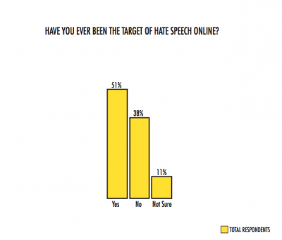 Over half (51%) of the respondents indicated they had been the target of hate speech online.
