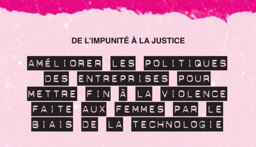 Au total, 24 études de cas ont été documentées dans les sept pays et les politiques de 22 compagnies ont été examinées. Ce rapport résume certains des obstacles les plus fréquents à la résolution des cas de violence faite aux femmes par le biais de la technologie à l’intérieur des cadres réglementaires actuels et utilise des exemples de politiques d’entreprise pour faire la lumière sure les meilleures pratiques et les solutions possibles aux demandes des femmes pour une responsabilité des entreprises. Le rapport contient les éléments suivants :